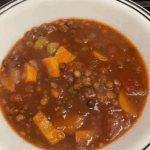 This lentil soup is packed with nutritional benefits and so fulfilling on a cold winter night. Lentils are an excellent source of protein, fibre, and iron, which support energy levels and digestive health. The carrots, celery, and tomatoes provide a boost of antioxidants and vitamins like vitamin A and C, while the garlic and spices add anti-inflammatory properties.
